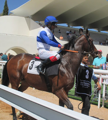 INGHAM (Cuadra Viguria) y J. Gelabert. (Luego el jockey subió a la yegua en la pista camino hacia la salida.)